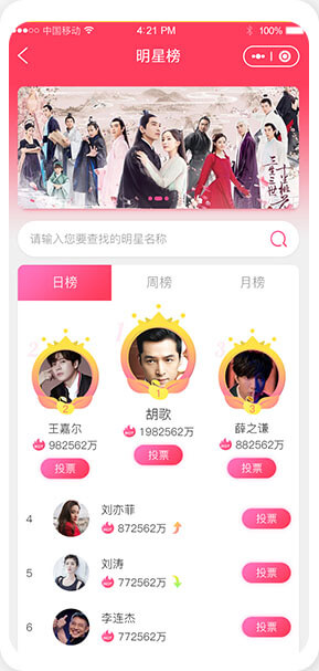 随时问您更新日榜、周榜、月榜排名,可以为你喜欢的明星投票;