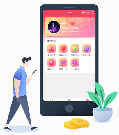 显示个人信息、喜欢的人、不喜欢的人、联系客服、帮助中心、任务中心、个性装扮等